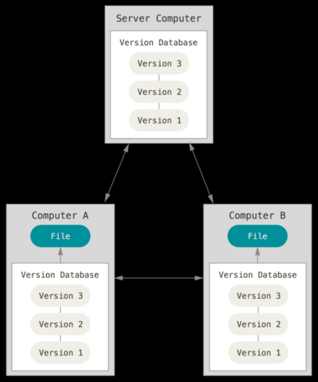 쉽게 설명하면 분산 버전관리 시스템은 중앙집중식 버전관리시스템의 온전한 내용을 통째로 로컬저장소들에도 가지고 있고 동일하게 서버에도 가지고 있는 형태 입니다.