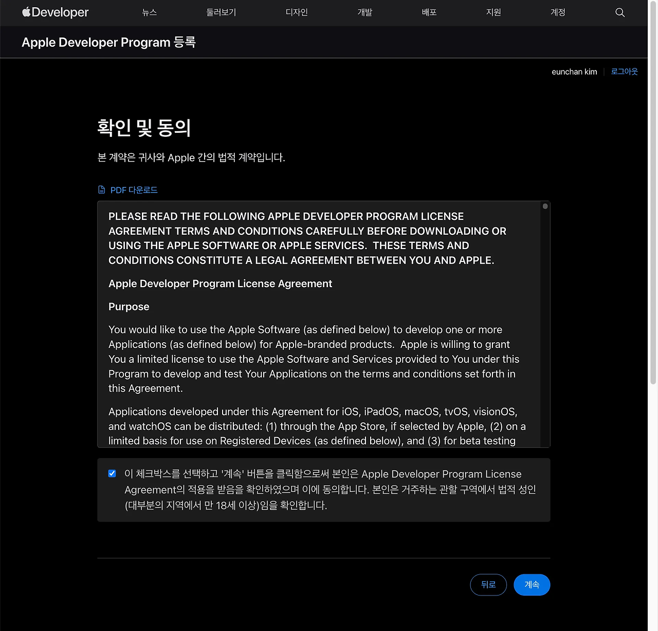 축하합니다! 애플 개발자 멤버십 등록을 완료하였습니다! 🎉