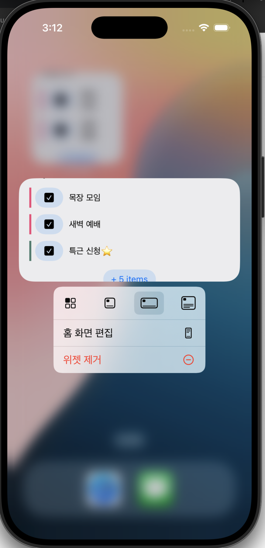 이미 Widget 을 Xcode 상에서, 생성하고 테스트가 가능하다는 전제하게 작성되었습니다.