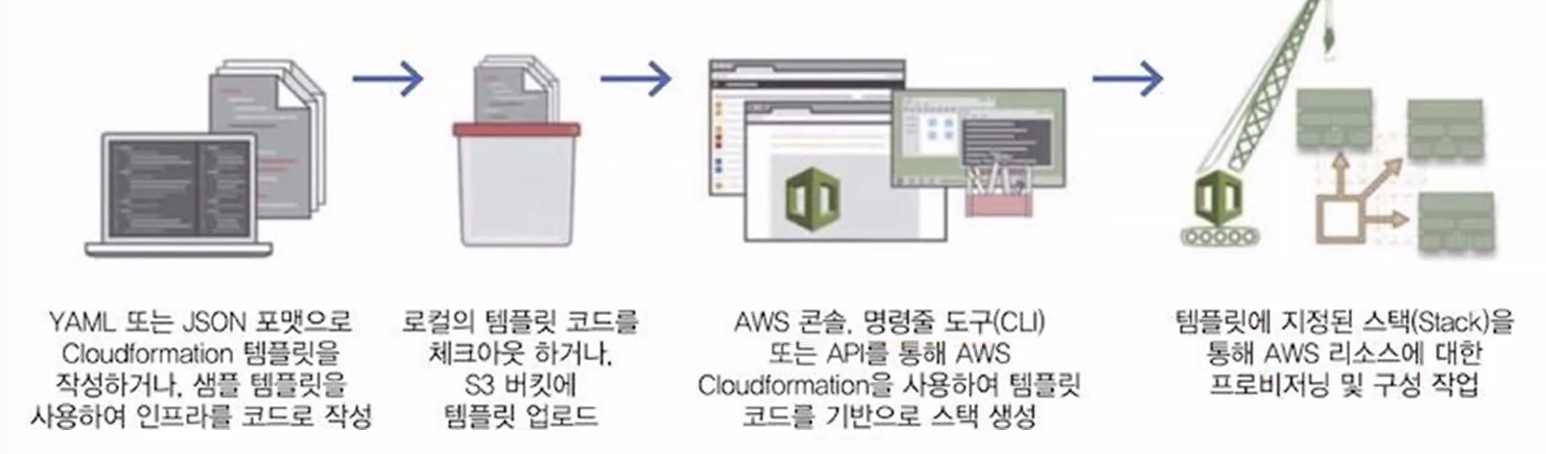 - 인프라 환경을 코드(Yaml 또는 Json 형태 템플릿파일)로 작성
