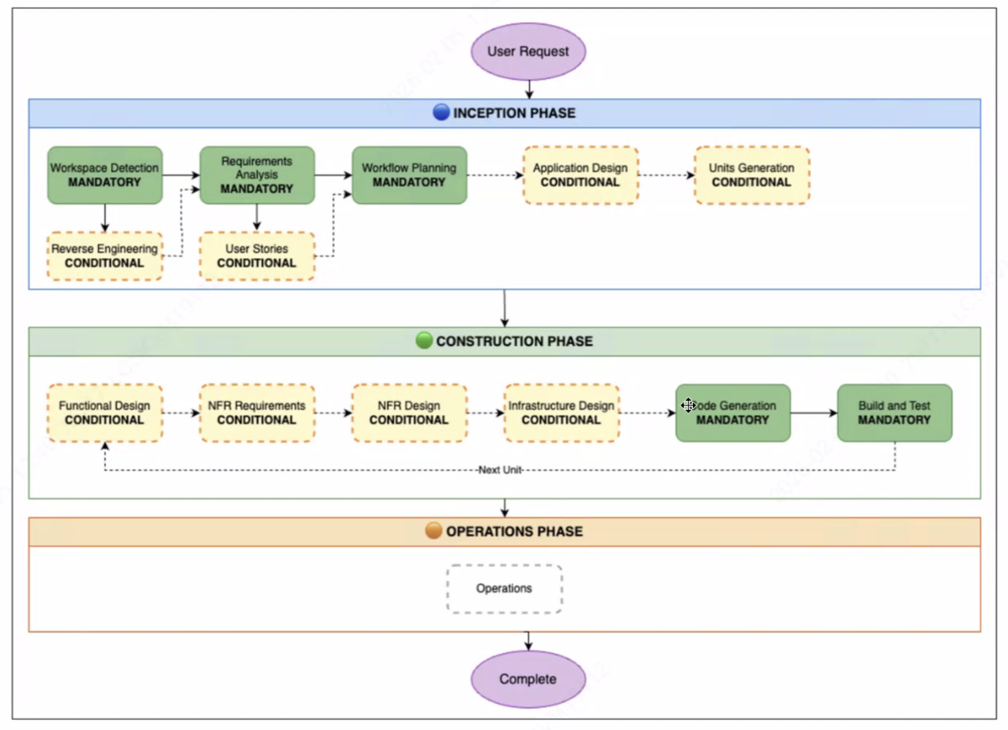 프로젝트의 라이프 사이클(분석설계 -> 구현 -> 운영)의 각 단계를 AI를 통해, 단계적으로 AI를 통해 구현해 나가는 방법론을 의미한다.